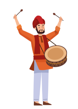 Traditional dhol players for weddings, live dhol performance, dhol beats for the baraat, wedding procession dhol players.