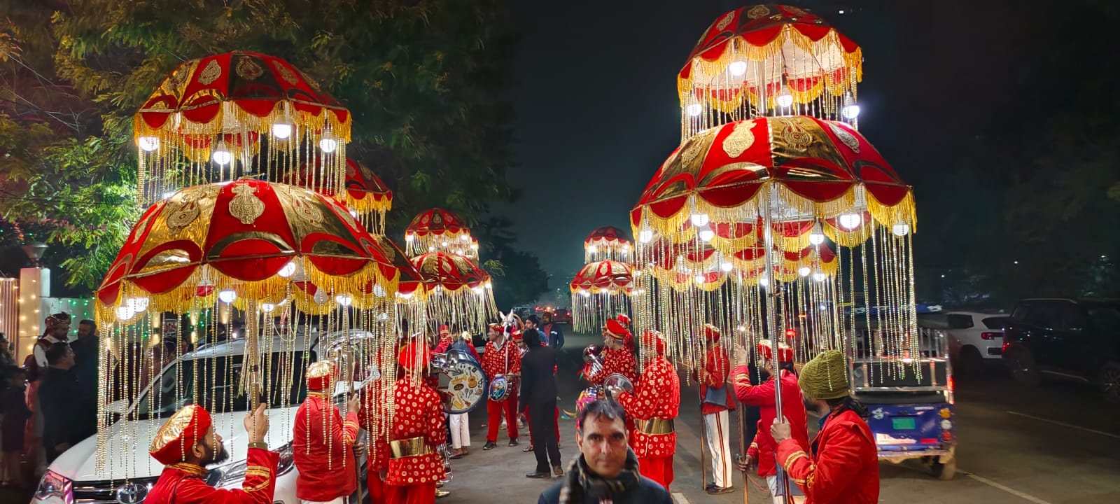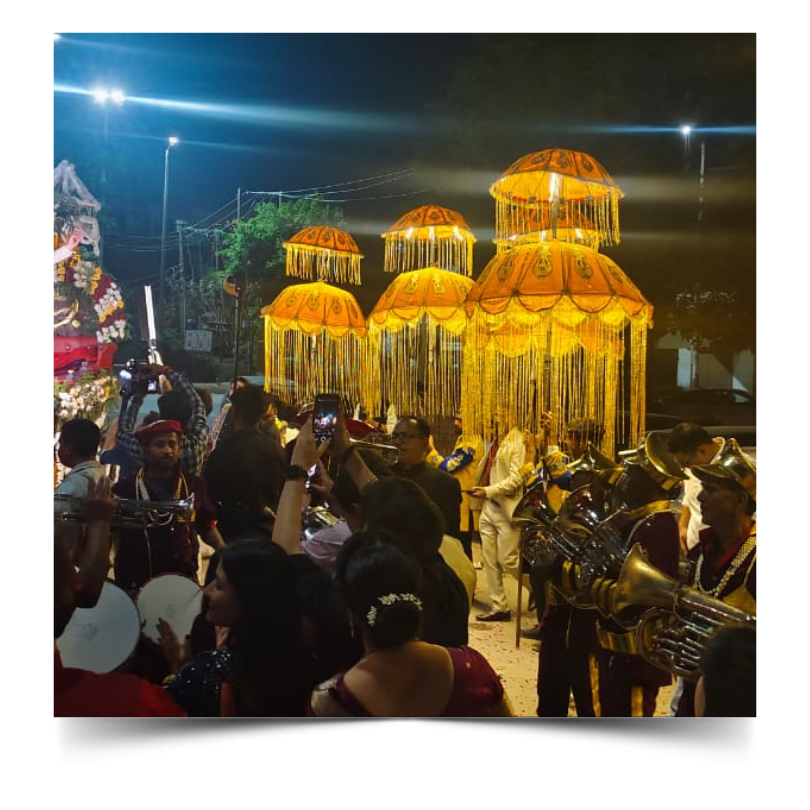 Our team is known for its professionalism, punctuality, and lively performances that blend tradition with celebration. Whether it's a grand wedding, religious function, or cultural event, we provide complete band, dhol, ghodi, and baggi services tailored to your needs. With decorative ghodis, beautifully lit buggies, and synchronized band performances, we make every event unforgettable.